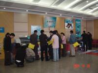 總體感覺邯鄲廣告市場比較成熟,展會前我們拜訪了邯鄲幾個(gè)有名的噴繪公司如晨光廣告、勝吉廣告公司和花之雨等。通過和他們交流,他們普遍認(rèn)為噴繪價(jià)格價(jià)格比較低,但是還不至于到通過價(jià)格來拼客戶的地步,同時(shí)認(rèn)為機(jī)器的選擇是很重要的。他們憑借著MIMAKI噴繪機(jī)的良好性能和自己的智慧能力一直服務(wù)于很多有名的客戶如中國移動等。這些客戶談及MIMAKI都贊不絕口。和晨光廣告公司的蔡總交談了解到,他們先前買過別人的一臺第四代的B品牌微壓電寫真機(jī),剛開始幾個(gè)月使用還可以,后來就出現(xiàn)很多問題,后來購買了我們一臺MIMAKI,同時(shí)表示如果這個(gè)機(jī)器賣出去會再買一臺MIMAKI,因?yàn)樗麄冇X得MIMAKI 噴繪機(jī)性能比較穩(wěn)定,機(jī)器比較專業(yè)。
